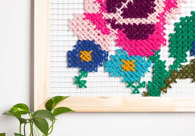 ¿No sabes con que cuadro decorar tu salón? La vuelta a la tradición de las labores de punto de cruz y bordado nos trae ideas muy originales y decorativas. Ideas sencillas de llevar a cabo con resultados muy vistosos. Hoy te proponemos este divertido y colorido DIY de Design sponge. En este tutorial se ha dibujado una flor pero puedes dibujar cualquier motivo que te pase por la mente. Tú eres el artista, nosotros te damos la idea.