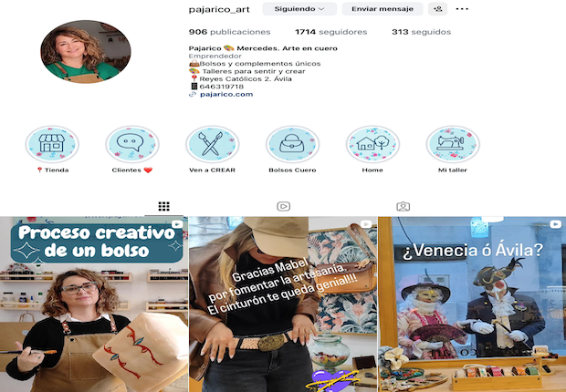 Qué hacen una murciana y un madrileño en Ávila un fin de semana de invierno y con temperaturas bajo cero sin levantar la cabeza de su mesa de trabajo. El escaparate te hace entrar, es imposible no hacerlo. Su local haciendo esquina con la Plaza del Mercado Chico, centro neurálgico de la ciudad castellana, está en un lugar inmejorable para que ningún vecino o viajero se quede sin contemplar el trabajo de unos artistas artesanos que no deja indiferente a nadie. Desde sus más que realistas pajaricos que en sus jaulas árabes te hacen dudar de si están vivos o no, hasta sus maravillosos bolsos de cuero, decorados a mano con diseños que siempre tienen una razón. Los frisos descubiertos en un yacimiento arqueológico, un viejo espejo de la abuela o un traje típico de Ávila. Piel, madera, cincel y, especialmente, una vocación y empatía desbordantes.