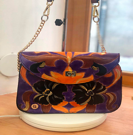 Nunca pudo imaginar que ese material, el cuero, fuera tan versátil y que facilitara tanto su arte, "me permitía pirograbarlo, repujarlo, pintarlos..., de verdad, me enamoré de él. Hago otras cosas, pero la piel hizo que empezara a hacer trabajos poco a poco, sin prisa, madurándolo". De los pendientes, brazaletes y pulseras pasó a bolsos, mochilas, cinturones y otros accesorios que requerían más tiempo, conocimiento y trabajo. Mercedes no renuncia de ninguna de las maneras a lo que ella quiere ofrecer a las personas que compramos su artesanía: "No solo tiene una parte artesanal, con buenos materiales, hecho a mano, además le doy un toque de color, un toque de trabajo artístico, de mi pintura y esa es la forma de que lo sientan únicos".