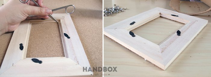 2. Colocamos el marco sobre el corcho, marcamos con un bolígrafo y luego cortamos.